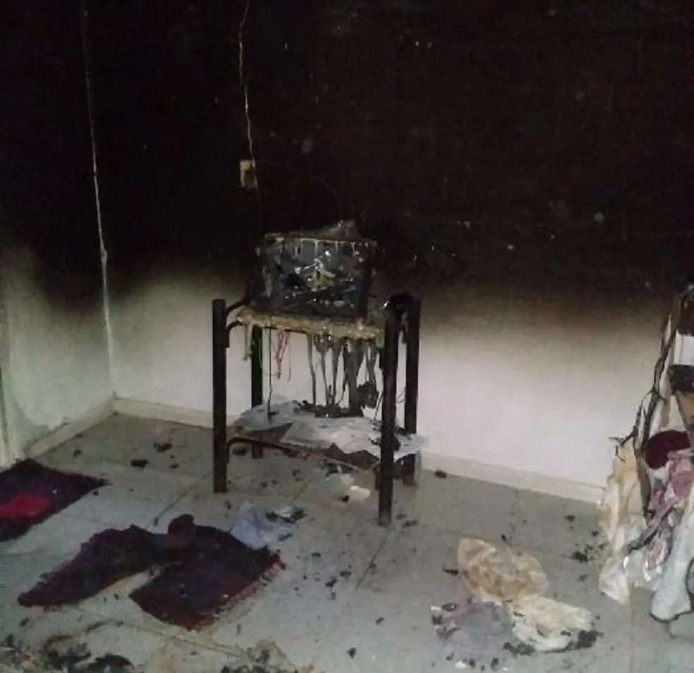 As imagens feitas no local mostram que a casa ficou com as paredes e o teto danificados pelas chamas. A cama, móveis, roupas e outros objetos foram destruídos, inclusive, documentos.