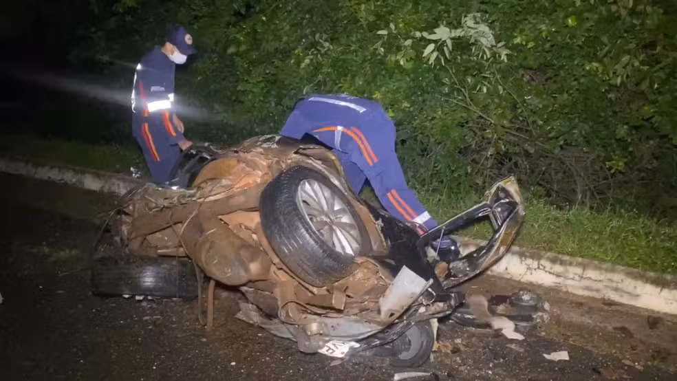 Um grave acidente na BR-153, próximo a Nova Olinda, deixou um jovem de 21 anos morto na madrugada deste domingo (16). Segundo os Bombeiros, o carro que ele dirigia partiu ao meio após colidir com uma caminhonete e, em seguida, ser atingido por um caminhão. O corpo da vítima, Natanael Silva Souza, foi encontrado em uma ribanceira às margens da rodovia. A causa do acidente ainda será investigada.