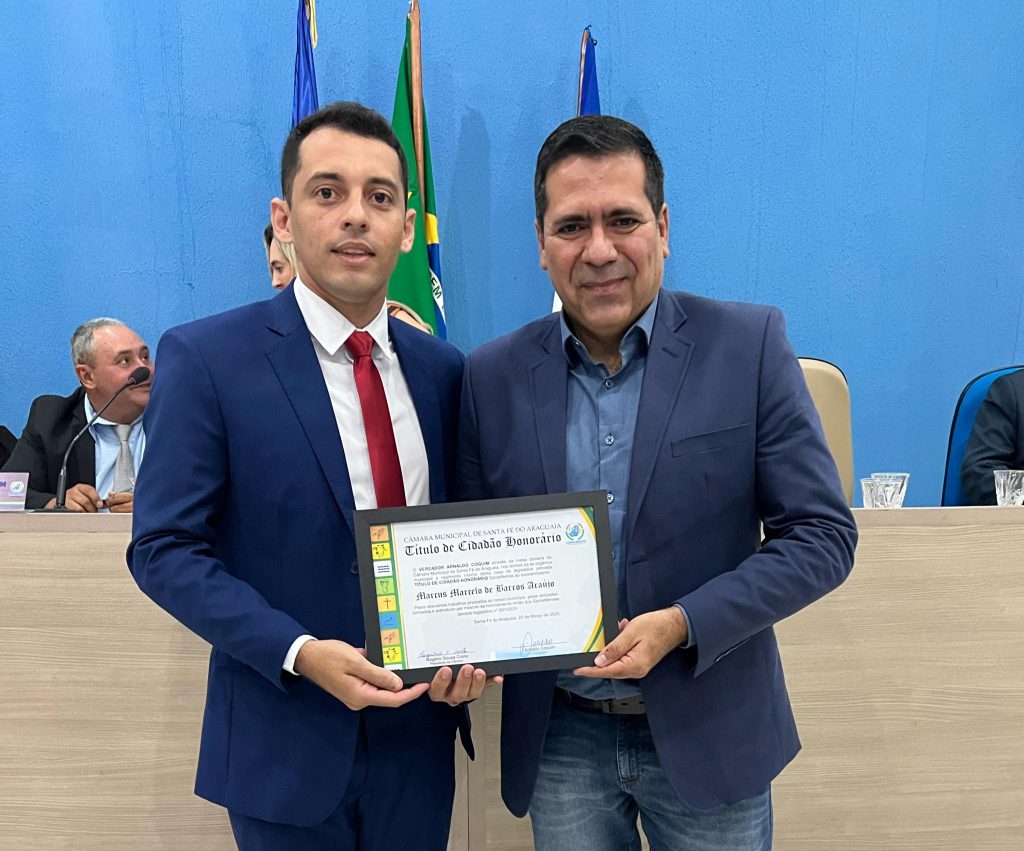 O deputado estadual Marcus Marcelo (PL) foi homenageado na noite da última quinta-feira, 20, durante sessão na Câmara Municipal de Vereadores de Santa Fé do Araguaia. Na ocasião, ele recebeu o título de Cidadão Honorário Santaféense, em reconhecimento aos serviços prestados à região, com destaque para suas contribuições nas áreas da saúde e da cultura.