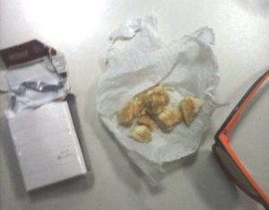 Eles foram submetidos à busca pessoal e foram localizados R$ 45,00 em dinheiro e sete pedras grandes de substância semelhante ao crack, as quais foram jogadas no chão quando os policiais faziam a abordagem aos dois rapazes.