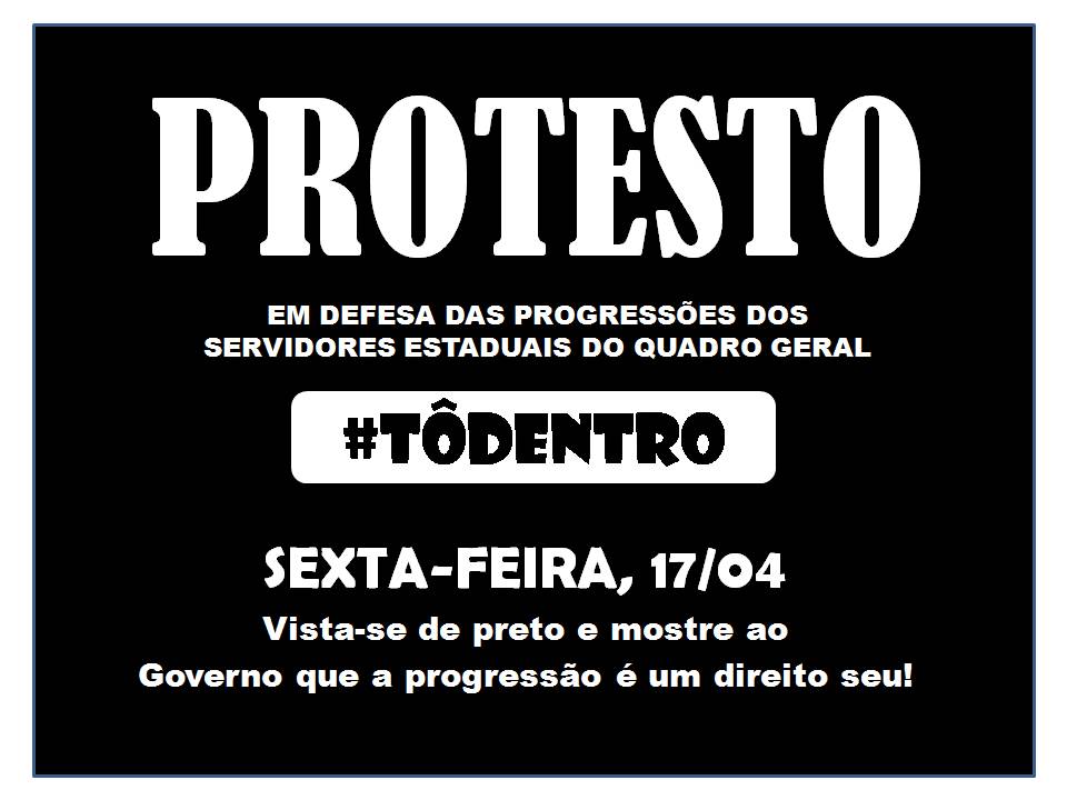 leia Geral da categoria realizada em 28 de março. Nesta sexta, os servidores irão trabalhar vestidos com roupas pretas como forma de demonstrar a insatisfação com os rumos da negociação sobre o pagamento das progressões e de outros direitos da categoria.