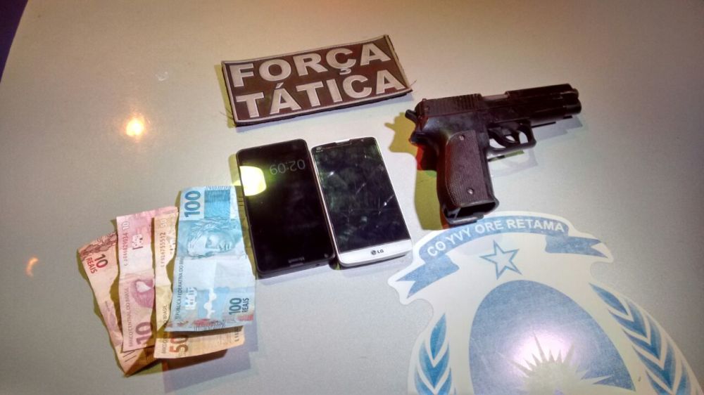 Com os suspeitos foram encontrados dois aparelhos de celular e a quantia de R$ 170 reais. Ambos foram reconhecidos pelas vítimas na Delegacia de Polícia, onde foram autuados em flagrante.