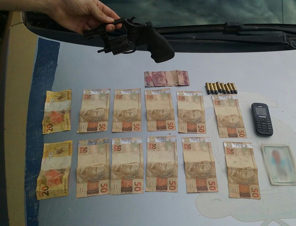 Durante buscas no interior da casa do artesão a PM encontrou um revólver Taurus Special, com capacidade para seis tiros e oito munições intactas. Foi encontrado também uma quantia de R$ 545 reais em dinheiro.