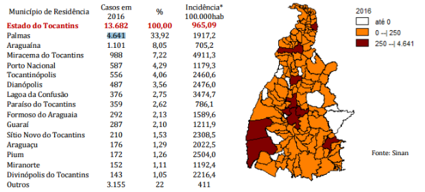 No Estado do Tocantins a situação é preocupante, os casos de dengue, neste ano de 2016, aumentaram em 71%. No ano passado entre janeiro e abril foram registrados 8.016 casos. De janeiro a abril de 2016, as notificações chegam a 13.682.