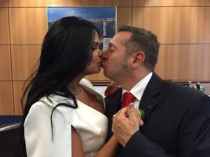 Nesta segunda-feira, Alessandro Teixeira assumiu o cargo antes ocupado por Henrique Eduardo Alves e teve a companhia de Milena. Ela aproveitou para posar com o amado no gabinete. O Ministério do Turismo confirmou que as fotos foram feitas nesta segunda-feira, 25, no gabinete do novo ministro.