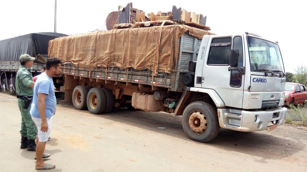O Batalhão de Polícia Militar Ambiental (BPMA) apreendeu um caminhão com carga de madeira irregular e com excesso de peso na terça-feira, 11, durante abordagem na Rodovia BR 153, altura do Km 143, município de Araguaína. Dois indivíduos que conduziam a carga foram autuados por meio da legislação ambiental.