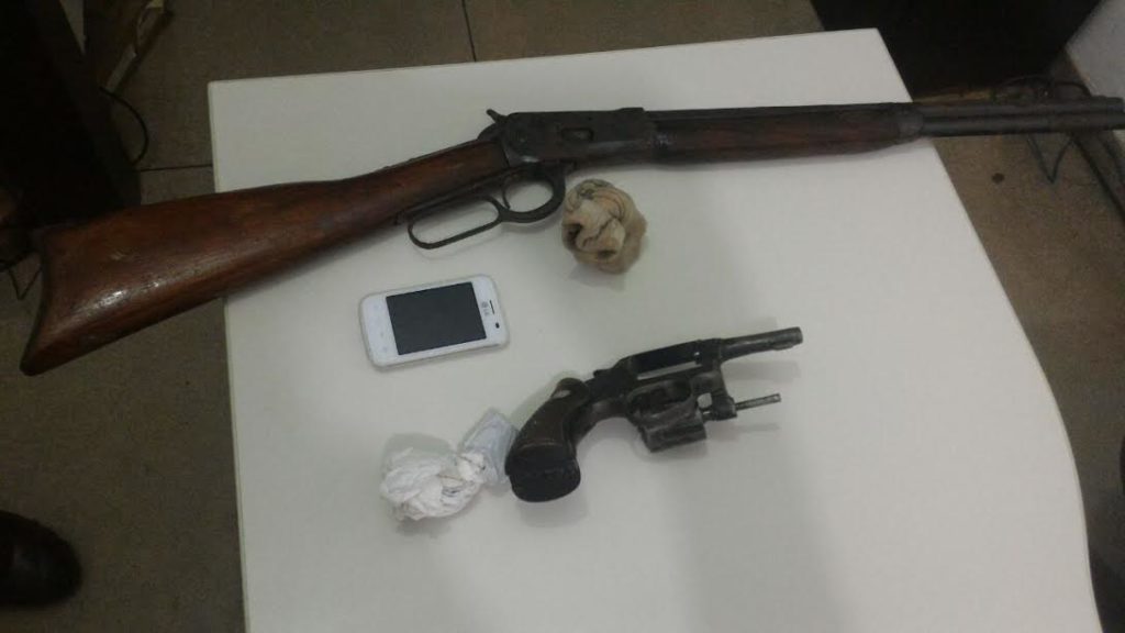 Na noite da última sexta-feira, 31/03, na Rodovia TO-222, município de Araguaína, o Batalhão de Polícia Militar Rodoviário e de Divisas – BPMRED prendeu um indivíduo acusado de porte ilegal de arma de fogo e com mandado de prisão em aberto. No veículo em que o suspeito trafegava os policiais apreenderam uma carabina calibre 44, um revólver calibre 38, e algumas munições.
