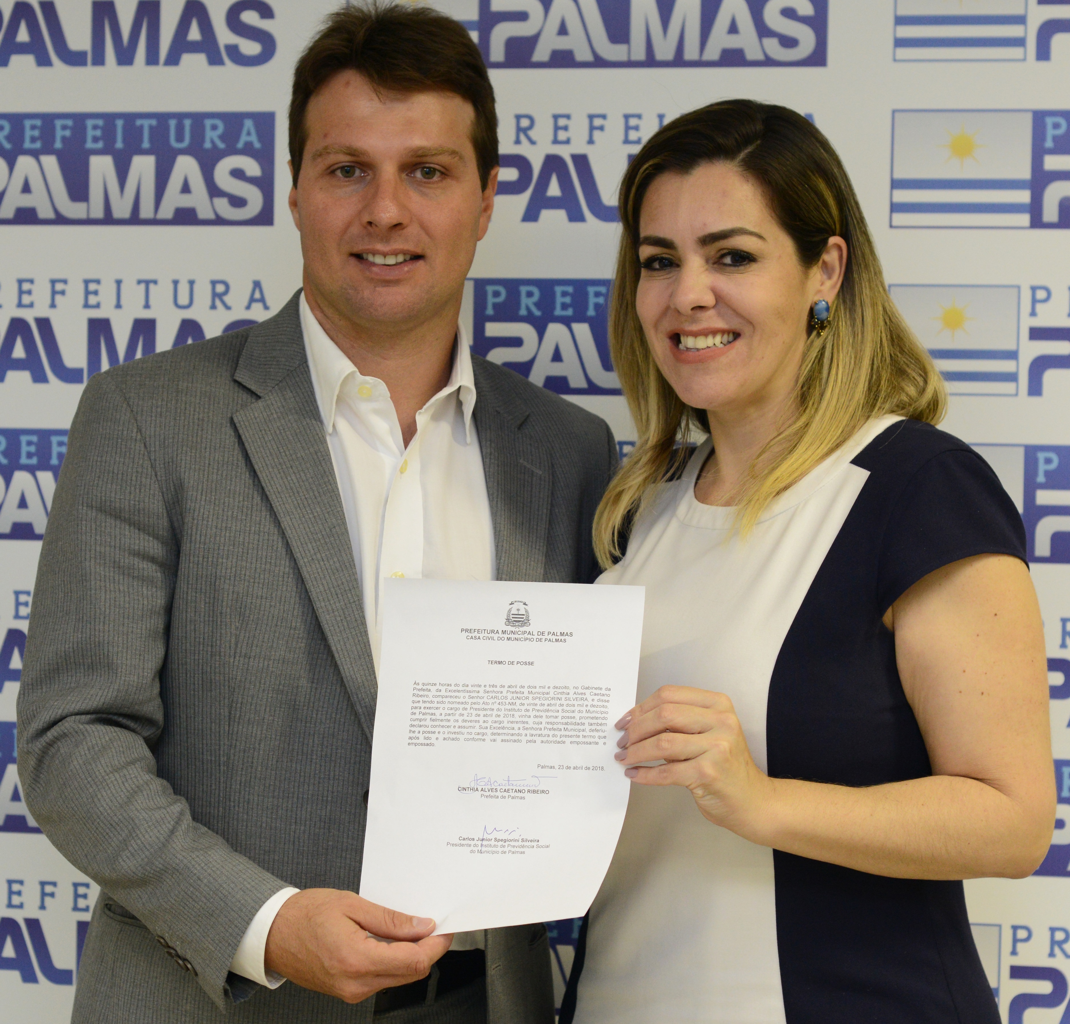 Foi empossado na tarde desta segunda-feira, 23, no gabinete da prefeita Cinthia Ribeiro, o novo presidente do Instituto de Previdência Social de Palmas (PreviPalmas), Carlos Júnior Spegiorini Silveira, conhecido como Jota Patrocínio.