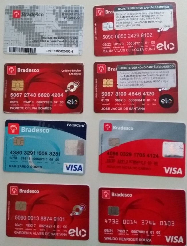 Em seu poder, os policiais civis encontraram diversos cartões bancários de terceiros, provavelmente furtados de vítimas idosas. Ele já foi reconhecido por uma vítima de Goiatins, quando se passava por funcionário da agência bancária auxiliando a sacar dinheiro, trocando os cartões e memorizando as senhas para aplicar o golpe.