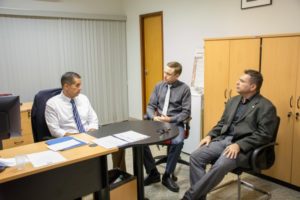 O Promotor de justiça responsável pelo controle externo da atividade policial em Palmas, Fábio Lang, recebeu na tarde desta sexta-feira, 27, a visita dos Corregedores-Gerais da Polícia Civil, Fábio Augusto Simon; e da Polícia Militar, Coronel Henrique de Souza Lima Jr, na sede do Ministério Público Estadual em Palmas.