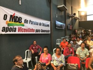 O Partido da República (PR) realiza nessa tarde de domingo, 22, a convenção que lança o Senador Vicentinho Alves como candidato nas diretas, e mesmo com o MDB ficando fora das eleição, grande parte do partido continua com o senador que agrega força ao seu palanque, como é o caso do MDB de Paraíso, encabeçada pelo atual prefeito da cidade e ex-governador Moisés Avelino, membros, lideranças vários políticos participam do evento e confirmam apoio à Vicentinho Alves.