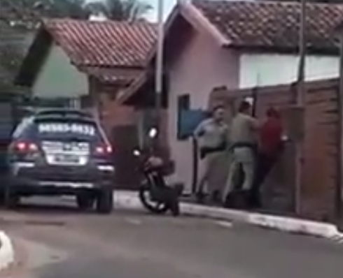 Dois policiais militares foram flagrados agredindo um homem em uma rua da cidade de Fortaleza do Tabocão. Uma gravação feita com celular mostra um dos policiais batendo no homem.