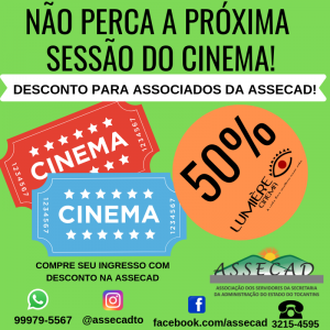 Uma parceria feira entre a Associação dos Servidores da Secretaria da Administração do Estado do Tocantins (ASSECAD) e o Cine Lumière, do Palmas Shopping, gante desconto de 50% do valor do ingresso para qualquer filme. O associado da ASSECAD pode escolher o filme e o horário para assisti-lo.