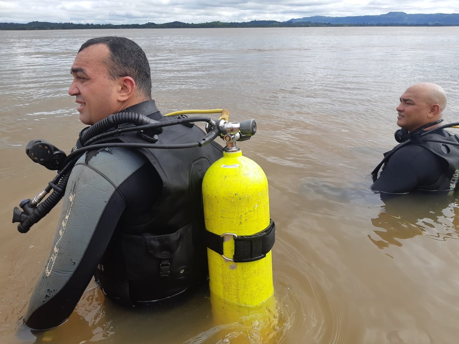 O Corpo de Bombeiros faz buscas por Edineia Santos dos Santos, de 39 anos, no rio Araguaia, em Xambioá, no norte do Tocantins. Os militares receberam a informação de que ela teria desaparecido enquanto tomava banho com o marido.