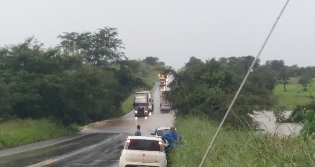 Um trecho da BR-153 entre as cidades de Presidente Kennedy e Brasilândia, no norte do Tocantins, alagou, após o córrego Maribondo transbordar e deixar a rodovia parcialmente interditada na manhã desta quarta-feira, 10. Apenas veículos de grande porte conseguiam passar.