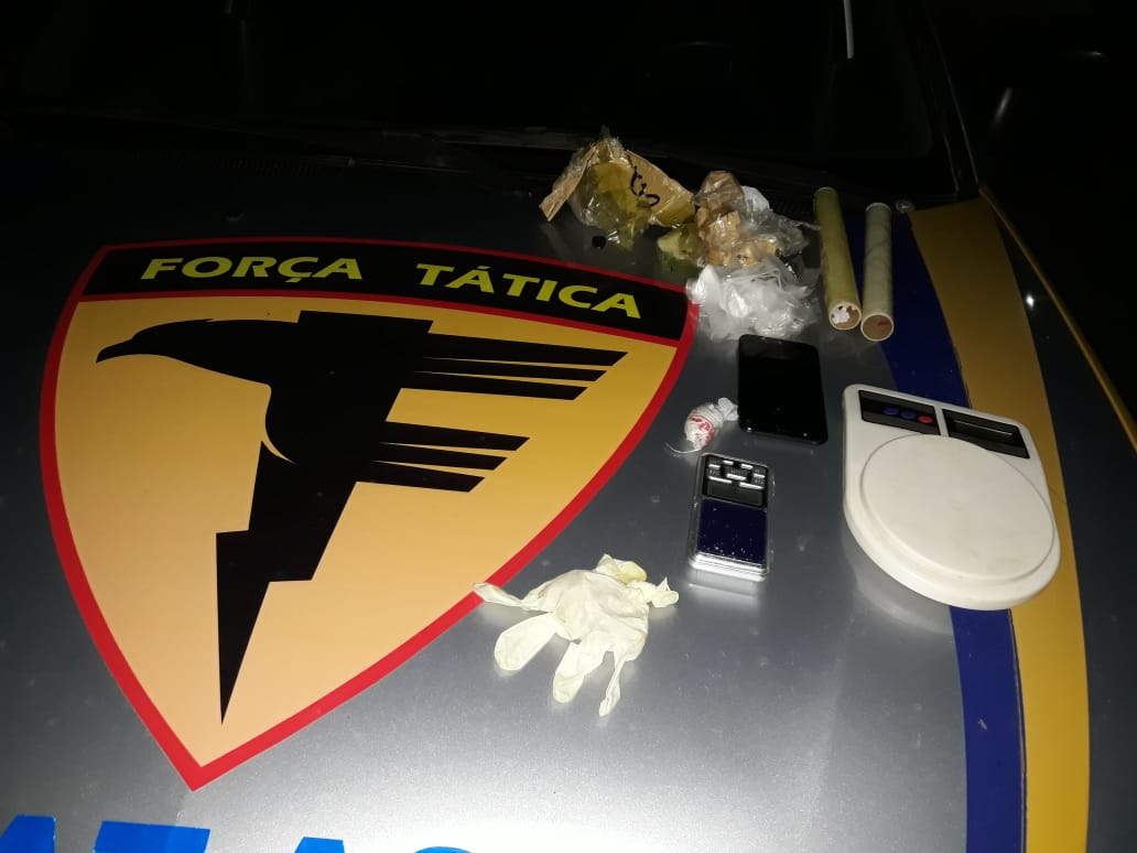 Ao chegar ao local, foram encontradas porções de cocaína, duas balanças de precisão, papel filme, e outros objetos ligados ao tráfico. Todo material e o suspeito foram conduzidos a Central de flagrantes onde foi lavrado o auto de prisão em flagrante por tráfico de entorpecentes.