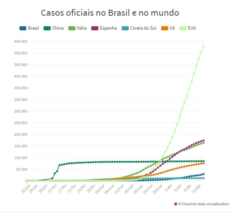 No final da semana passada, os Estados Unidos registraram dois altos balanços diários de vítimas (mais de 3.800 e 4.500 mortos), mas esses dados se deviam em parte à soma das mortes “provavelmente ligadas” à covid-19, que nunca haviam sido levados em consideração até o momento. Além desses dois balanços, o número de mortos em 3.176 na noite de hoje é o mais alto registrado em um país em um dia desde o início da pandemia, que deixou quase 190.000 mortos em todo o mundo. Apesar desses dados alarmantes, vários estados do país, incluindo Texas, Vermont e Geórgia, decidiram abrir caminho para o desconfinamento, autorizando a reabertura de algumas empresas. (Uol)