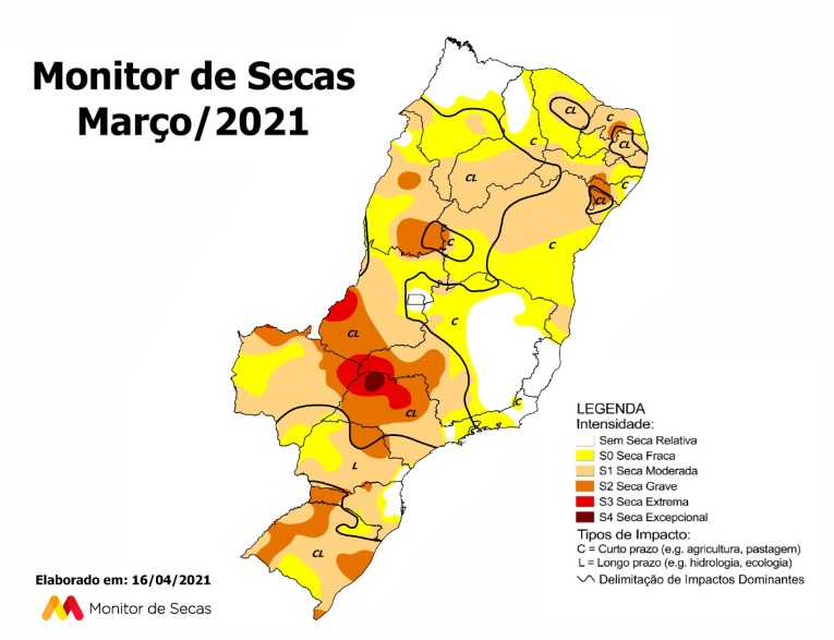 O Monitor de Secas é um processo de acompanhamento regular e periódico da situação da seca em vários estados brasileiros, cujos resultados consolidados são divulgados por meio do Mapa do Monitor de Secas, que pode ser acompanhado clicando aqui.
