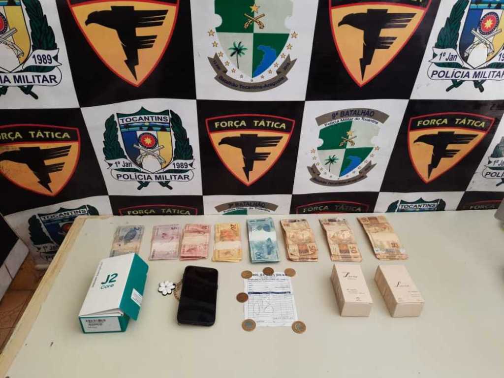 Em poder da dupla a equipe de Força Tática da PM apreendeu uma quantia de R$ 4.725,00 em espécie, um aparelho celular, que a dupla havia acabado de comprar, conforme nota fiscal no valor de R$ 1.100,00 e dois frascos de perfume.