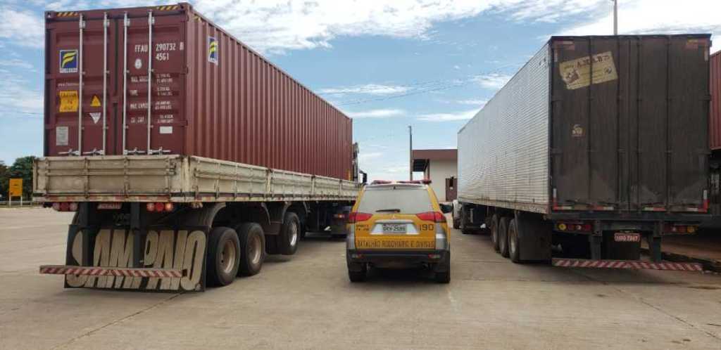 Durante fiscalização de veículos pesados no posto fiscal de Talismã, altura do KM 800, uma equipe de patrulheiros do Batalhão de Polícia Militar Rodoviário e Divisas (BPMRED), deu ordem de parada a um caminhão trator Volvo que tracionava o semirreboque da marca Metalcar.