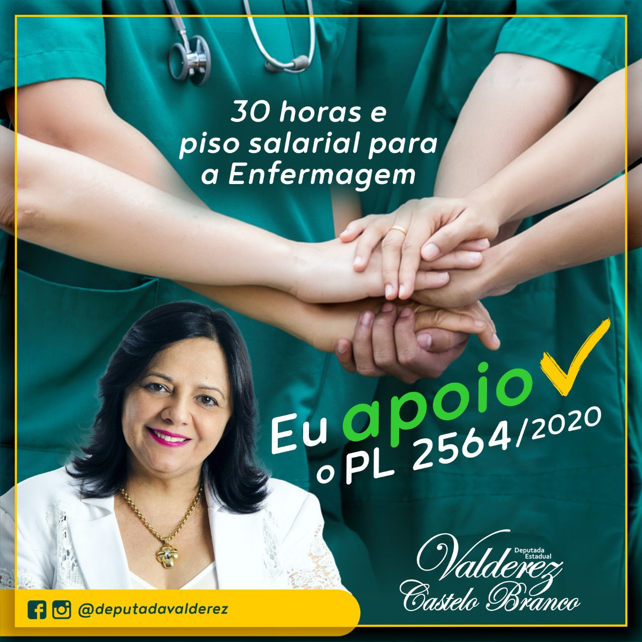 Nesta segunda-feira (26), a deputada estadual Valderez Castelo Branco usou suas redes sociais para se manifestar favorável à proposta. Para a parlamentar este é um momento crucial para a valorização dos profissionais que estão na linha de frente no combate à Covid-19.