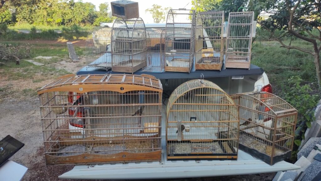 O trabalho da equipe de fiscalização para o resgate das aves aconteceu após uma denúncia feita pelo Linha Verde 0800 063 11 55. As aves eram mantidas em cativeiro sem licença, o que incorre em crime ambiental conforme o art. 29 da Lei nº 9.605/1998.