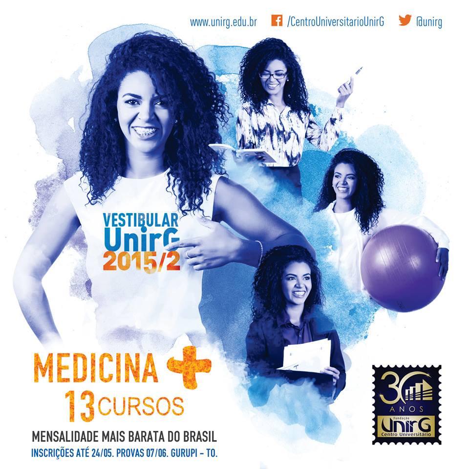 Estão abertas até 24 de maio as inscrições no processo seletivo 2015/2 do Centro Universitário UnirG, em Gurupi (TO), pelo sitewww.unirg.edu.br. Além do cursos já existentes, a partir desse semestre os candidatos também poderão optar por cursar Psicologia com duas habilitações: bacharelado e licenciatura, sendo que a UnirG é a primeira instituição do Tocantins a oferecer as duas modalidades. Outra novidade é a abertura da graduação em Letras com habilitação em Português/Libras (Língua Brasileira de Sinais).