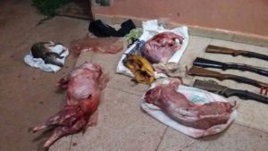 Já as espingardas e os animais abatidos estavam com os prováveis caçadores, E.S.Silva, 55 anos, A.G.Portel, 60 anos, M. C. Guimaraes, 43 anos, e A.M.da Silva, 27 anos. O grupo foi abordado pela guarnição durante patrulhamento de rotina, na Avenida Brasil, em Ananás-TO, por volta das 2h da madrugada também desta segunda-feira.
