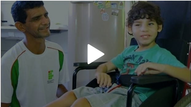 Gabriel também não enxerga e se movimenta com dificuldade. Ele até ganhou uma cadeira de rodas, o que facilitou a vida do pai, pois o homem precisava carregar o menino que já está bem acima do peso e da estatura de uma criança de três anos de idade.
