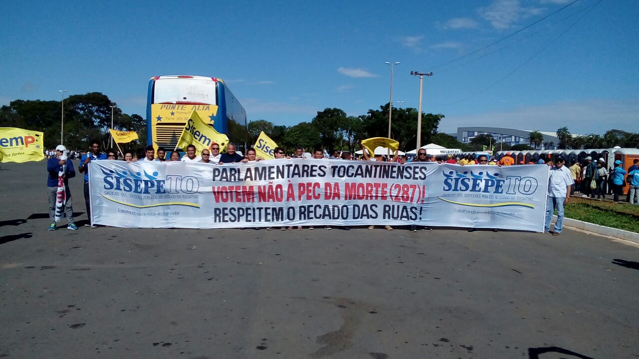 A diretoria do SISEPE-TO percorreu os sete quilômetros do trajeto segurando uma faixa que dizia “Parlamentares tocantinenses, votem não à PEC da Morte. Respeitem o recado das ruas!”.