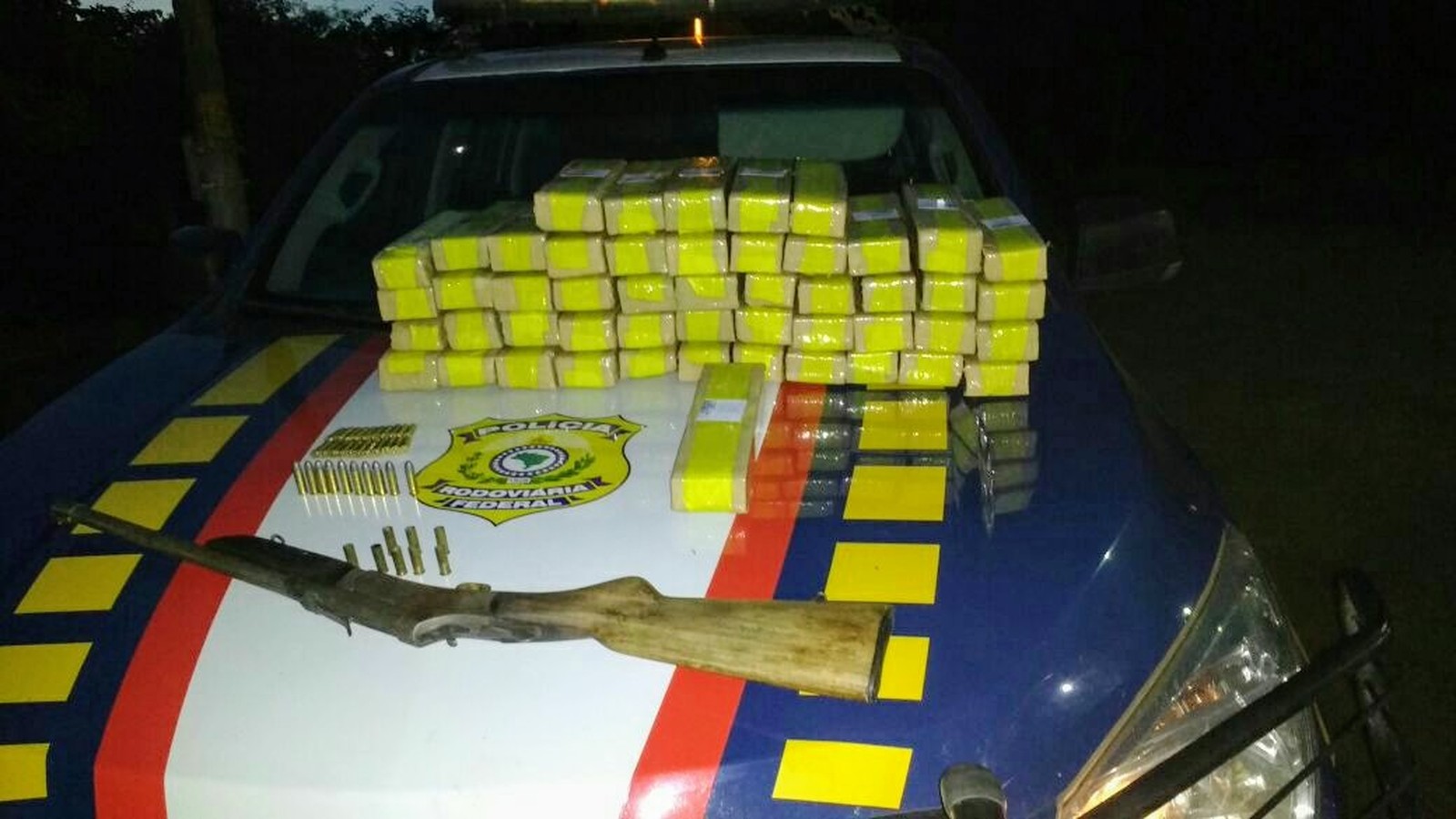 Segundo a PRF, os policiais sentiram um forte cheiro de maconha vindo bagageiro do veículo. No local encontraram duas malas carregadas com 50 tabletes de maconha, com peso aproximado de 50,251 Kg da droga.