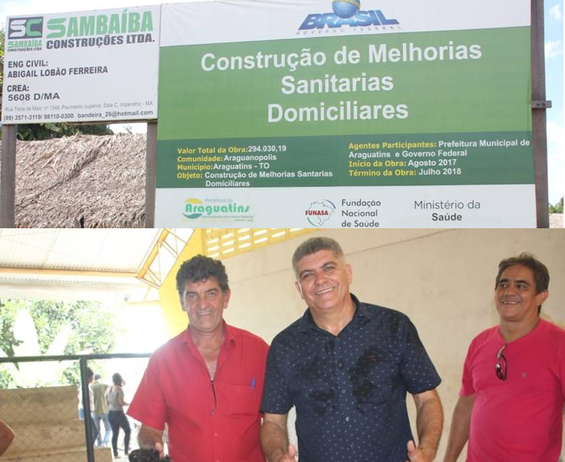 O prefeito de Araguatins Cláudio Santana inaugurou neste domingo, 27, no distrito de Araguanópolis 19 banheiros para os moradores. O investimento de R$ 294.30,19 mil reais provenientes de um convênio com a Fundação Nacional de Saúde (Funasa) para construção de melhorias sanitárias domiciliares.