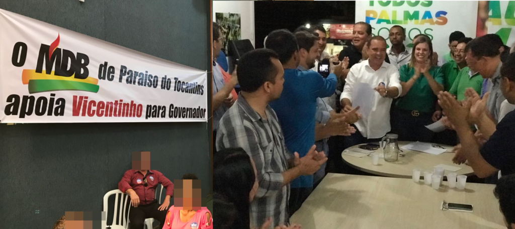 Mesmo sendo de modo informal, todo o MDB está apoiando Vicentinho com o aval do governador cassado Marcelo Miranda. No dia 22 de abril deste ano em convenção realizada pelo (PR) no auditório da ATM em Palmas que lançou o senador como candidato para as eleições suplementares do dia 3 de junho, uma grande parte do MDB participou e declarou apoio à sua candidatura.