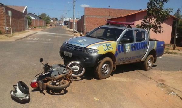 Um motociclista de 18 anos, que não teve o nome divulgado, foi levado para a delegacia de Araguaína nesta quarta-feira (1º) após bater na lateral de uma viatura da Polícia Militar. O acidente foi na rua das Macieiras, no setor Araguaína Sul. De acordo com o boletim de ocorrência, o condutor da moto perdeu o controle e invadiu a contramão ao tentar entrar na via em um cruzamento.