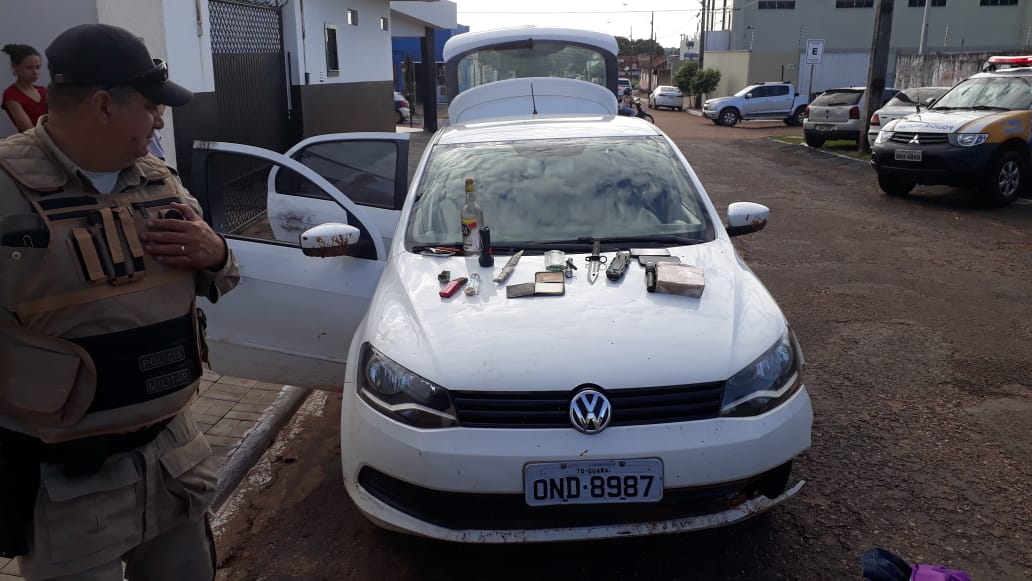 Diante da denúncia, imediatamente as equipes da PM se deslocaram até a fazenda e iniciaram as diligências pela região. Durante o patrulhamento, avistaram nas proximidades da Rodoviária de Guaraí o veículo VW GOL, cor branca, com as mesmas características mencionadas pela vítima.