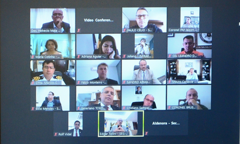 Participaram da videoconferência o presidente do Tribunal de Justiça, desembargador Helvécio de Brito Maia Neto; o defensor público-geral da Defensoria Pública do Estado (DPE), Fábio Monteiro; a procuradora-geral de Justiça do Ministério Público do Estadual (MPE), Maria Cotinha Bezerra; e o presidente do Tribunal de Contas do Tocantins (TCE/TO), o conselheiro Severiano Costandrade.