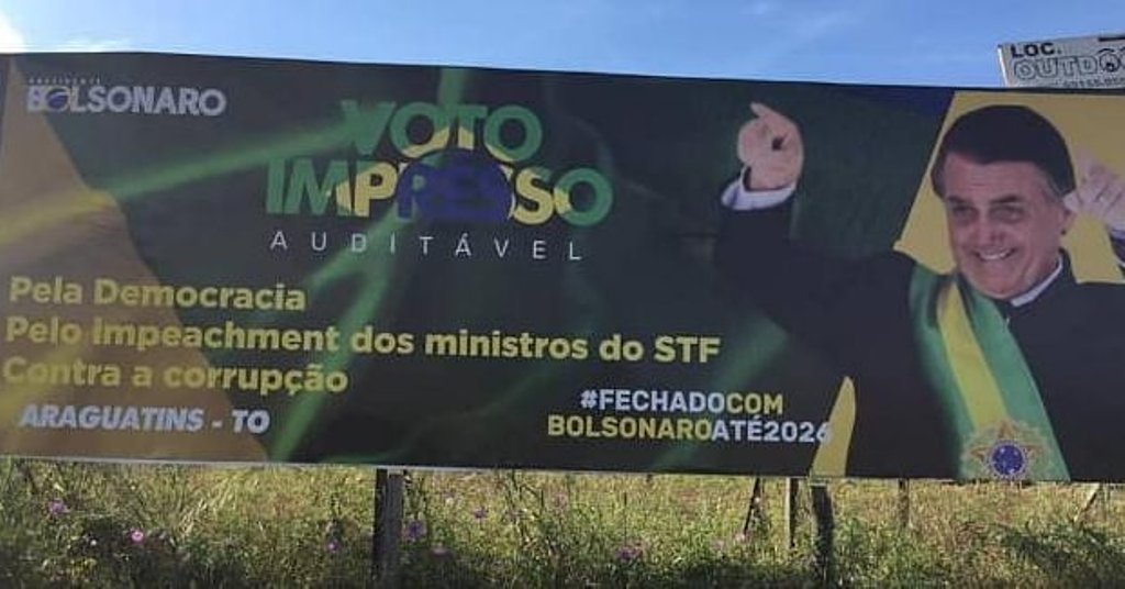 No outdoor estava escrito a seguinte mensagem: Pela democracia, pelo impeachment dos ministros do STF, contra a corrupção [Fechado com Bolsonaro até 2026].