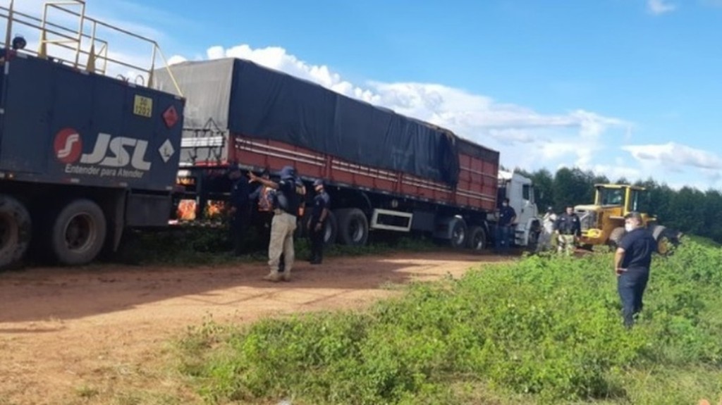 Um caminhão que tentou fugir da inspeção dos agentes foi avisado e tentou fugir do local. Em seguida, os agentes começaram uma busca na região.