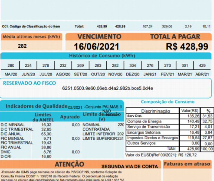Fatura de energia / Foto: Norte do Tocantins