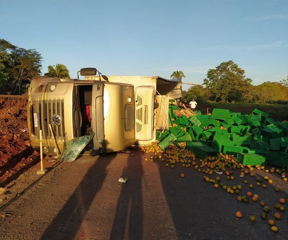 Desvio é interditado no norte do Tocantins após caminhão com frutas tombar