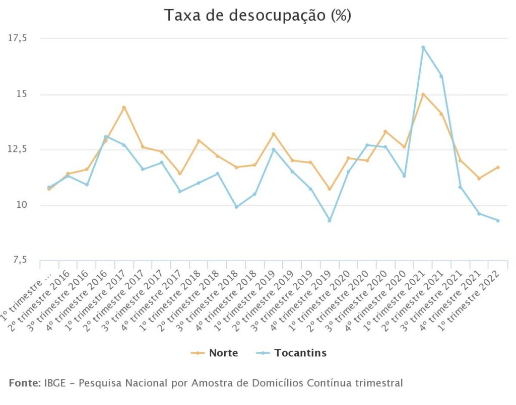 A Pesquisa divulgada no último dia 13 pelo IBGE, mostra que o Tocantins, governado por Wanderlei Barbosa (Republicanos), há apenas seis meses no cargo, mostra que a taxa de pessoas sem emprego no primeiro trimestre de 2022 caiu 9%. Conforme o governador, superado o período mais crítico da pandemia do coronavírus, o cenário é de esperança para o povo do Tocantins.