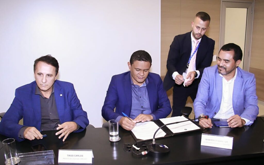 Cumprindo agenda em Brasília e acompanhado da comitiva Lagoense e líderes do Estado do Tocantins, o Prefeito Thiago Carlos participou nesta quarta-feira, 25, da assinatura do termo de Execução descentralizada para estudo e execução de 14 elevatórias em rios do município de Lagoa da Confusão-TO.