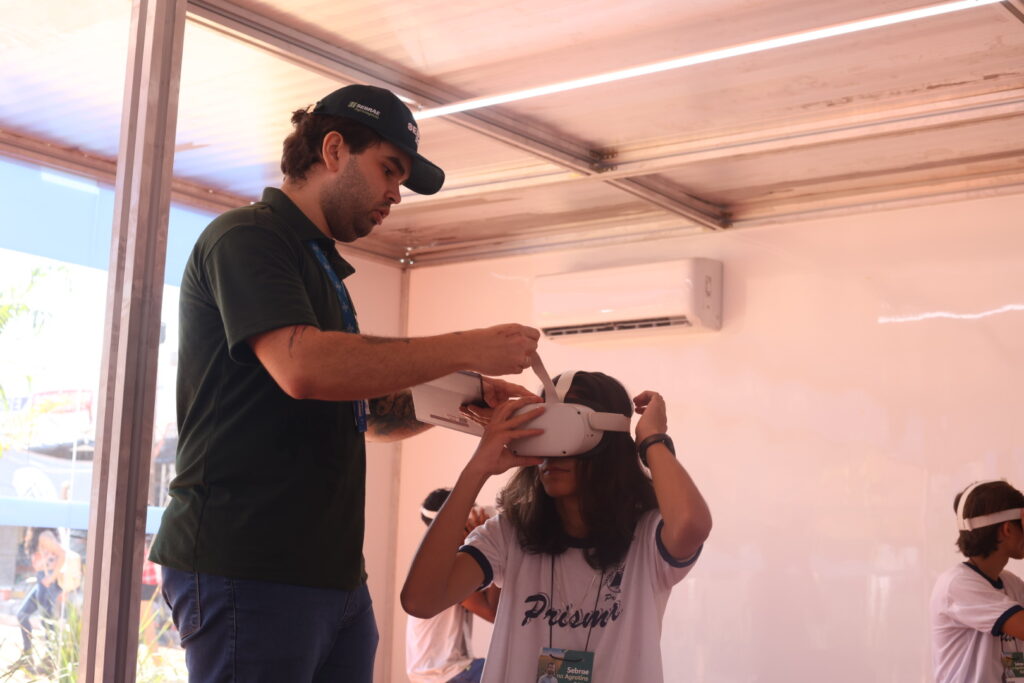 Uma sala onde é possível visitar paisagens incríveis do Tocantins, como Jalapão e Serras Gerais, apenas por meio de óculos VR. Essa experiência é realizada por meio da sala de Realidade Virtual, espaço proposto pelo Sebrae durante a Agrotins 2024.  Também durante a feira, a instituição oferece palestras, seminários e capacitações voltadas para os pequenos produtores rurais, empresários e estudantes de várias faixa etária.