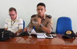 Durante sua fala, capitão PM Valdeonne enfatizou que durante o episódio ocorrido no dia 2 de maio do corrente ano a Polícia Militar (PM) por meio da 4ª CIPM tomou todas as providências legais e necessárias a cerca do ocorrido. Finalizou, acrescentou ainda que a PM prestou todo apoio aos trabalhadores rurais sem terras, inclusive conduzindo os mesmos até o acampamento de origem.