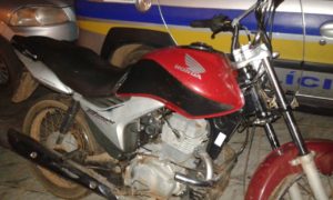 Na noite desta terça-feira, 9, a Polícia Militar (PM), recuperou como produto de furto, a moto Honda CG 150 Titan ES, cor vermelha, sem placa, a qual teria sido, segundo relatos, furtada há mais de 1 mês.
