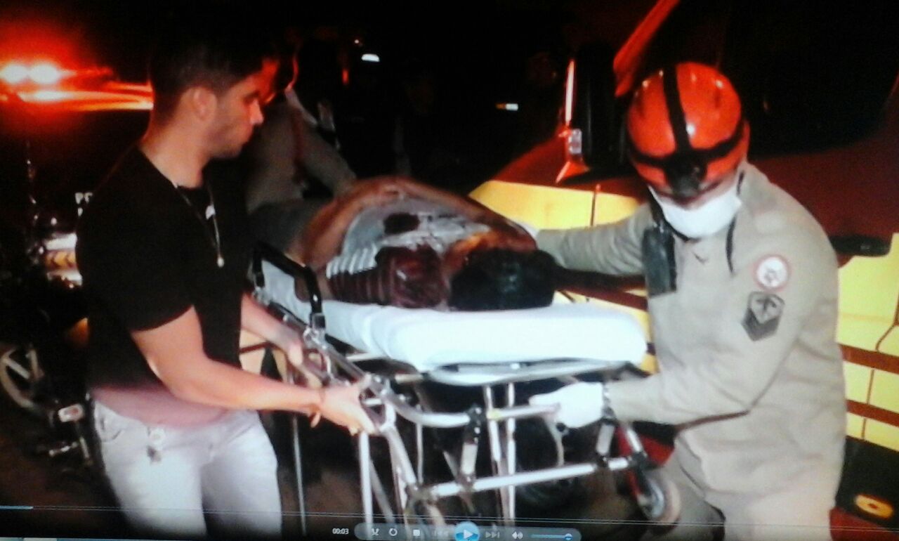 No local, um homem ferido e sangrando bastante. A vítima foi identificada como Nilton Pereira Gomes 32 anos, a PM imediatamente acionou o Corpo de Bombeiros e SAMU.