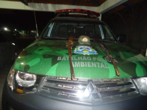 Ainda no dia 29, os policiais militares avistaram um senhor na TO-201, carregando um saco de fibra com um objeto aparentando ser uma espingarda. Ao ser abordado, o cidadão abandonou o saco e fugiu para o matagal próximo. O saco foi vistoriado e no interior foram encontradas duas espingardas tipo “bate-bucha”, de fabricação artesanal.  O autor não foi localizado e as armas de fogo foram recolhidas e encaminhadas para a Delegacia de Polícia Civil.