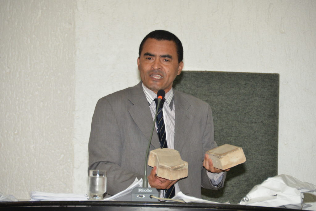O Deputado levou para tribuna amostragem do material utilizado no calçamento de Taquruçu