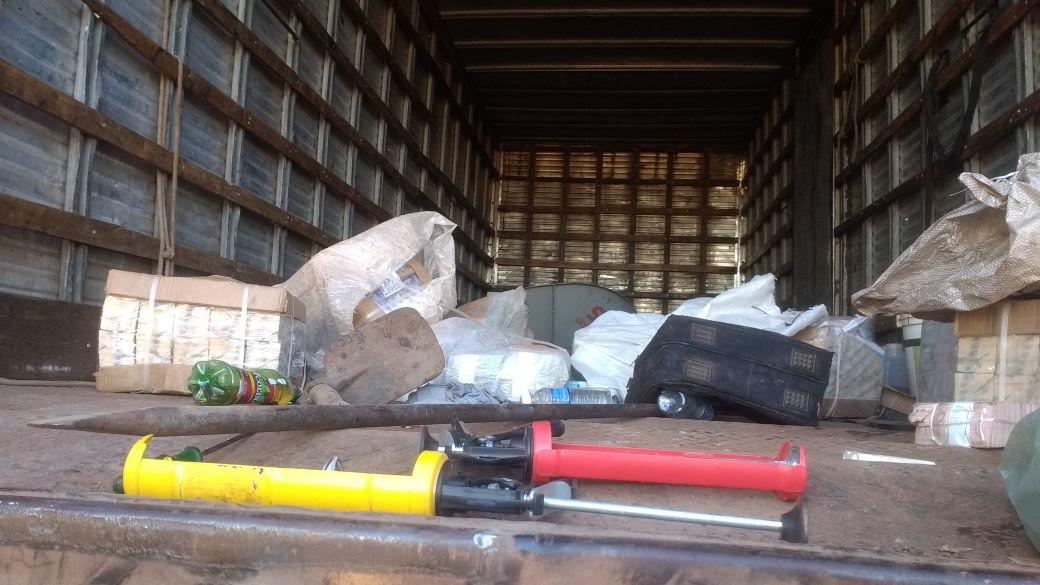Durante patrulhamento a PM localizou um caminhão baú, Mercedes Bens, cor vermelha, placa de Goiânia – GO, com explosivos e dinheiro, além de duas caminhonetes, sendo uma Amarok de cor cinza, com placa de Teresina – PI e uma Toyota Hilux de cor prata, com placa de Mossoró – RN, uma delas apreendida com explosivos e na outra os policiais localizaram também uma pistola e alguns projéteis de outras armas de fogo. Os criminosos utilizaram o extintor de incêndio do veículo na arma para dificultar a coleta de possíveis impressões digitais. Os veículos foram abandonados próximos à cidade de Cariri.