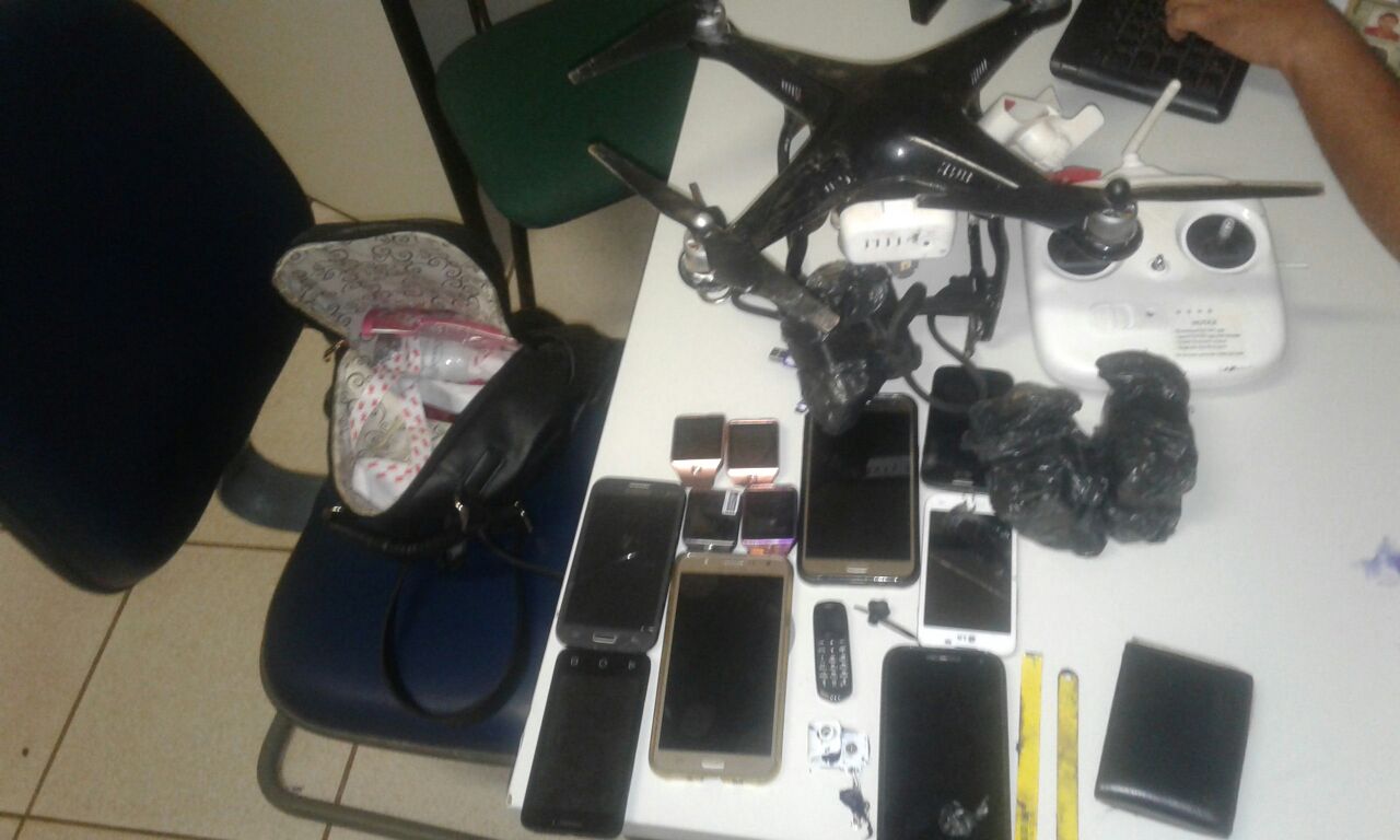 Drone, drogas e celulares apreendidos